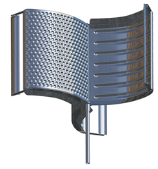 A traditional horizontal blade design turbine of similar size requires a greater level of wind speed to generate power. The vertical axis turbines provide omni-directional wind collection. The torque produced allows it to make power while turning at slower blade speeds.
